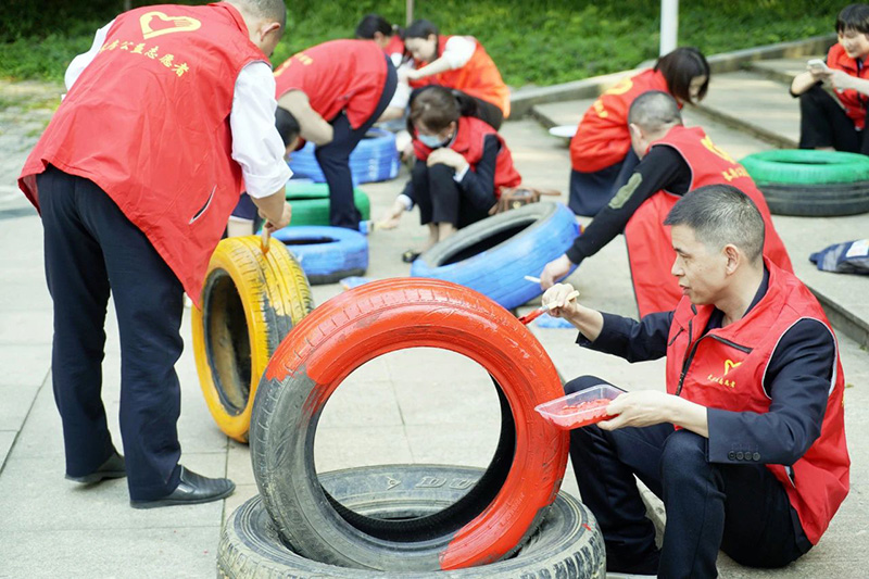 長(zhǎng)房·時(shí)代城小區(qū)輪胎涂裝裝點(diǎn)小區(qū)環(huán)境