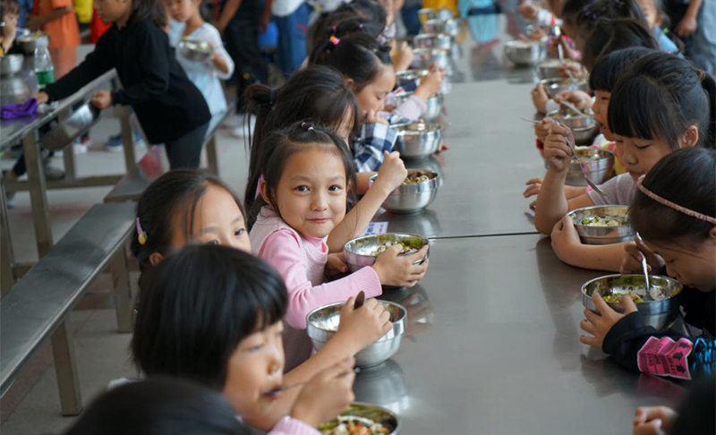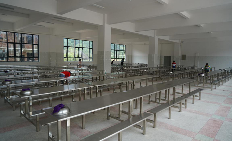 湖南省安化縣奎溪鎮(zhèn)完小現(xiàn)有13個(gè)教學(xué)班,學(xué)生592人,33名教職員工。以前由于學(xué)校食堂太小、餐桌破爛不堪,而且沒(méi)有凳子,學(xué)生們只能分批次就餐,二十幾個(gè)孩子圍在四張拼在一起的餐桌旁站著吃飯。為了解決孩子們的就餐環(huán)境,學(xué)校通過(guò)各種努力貸款新修建了學(xué)校食堂,新學(xué)期已投入使用,但舊的餐桌已無(wú)法繼續(xù)使用。為保障孩子們能有一個(gè)干凈整潔、溫馨如家的食堂,長(zhǎng)房集團(tuán)“藍(lán)絲帶”愛(ài)心傳遞基金向奎溪鎮(zhèn)完小捐贈(zèng)了70套不銹鋼餐桌椅,徹底解決了孩子們“站著吃飯”的問(wèn)題。
