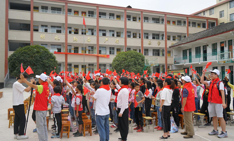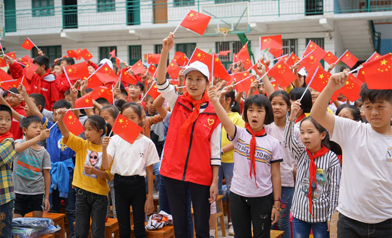 志愿者與孩子們齊唱《我和我的祖國(guó)》