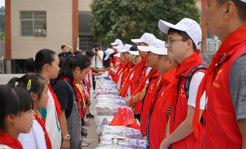 儀式現(xiàn)場(chǎng),孩子們給全體志愿者及到場(chǎng)嘉賓系上了鮮紅的紅領(lǐng)巾,志愿者隨后向30名貧困學(xué)生送出了集團(tuán)精心準(zhǔn)備的書包、文具套裝、可洗水彩筆等學(xué)習(xí)用品,孩子們抱在懷里,甜在心里,愛(ài)不釋手。集團(tuán)黨群工作部負(fù)責(zé)人表示本次捐助是集團(tuán)一直踐行的初心,要求孩子們要以奎溪鎮(zhèn)完小為人生賽跑的起點(diǎn),追逐遠(yuǎn)大的夢(mèng)想,并對(duì)孩子們提出三點(diǎn)希望:一是希望孩子們從小樹(shù)立遠(yuǎn)大理想;二是希望孩子們熱愛(ài)偉大祖國(guó);三是希望孩子們要懂得感恩,努力學(xué)習(xí),回饋家鄉(xiāng)和社會(huì)。